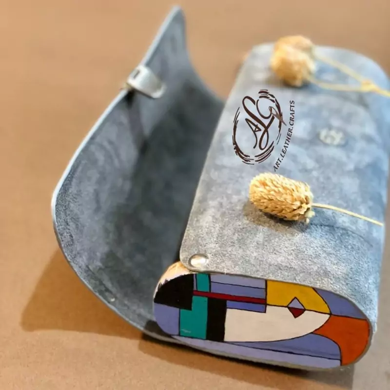 کیف دستی زنانه طرح کوبیسم با قابلیت اضافه کردن بند رودوشی چرم طبیعی گاوی درجه یک تماما دستدوز است که در کناره کیف از چوب نراد طراحی شده توسط تیم چرم خلاق استفاده شده که روی چوب ها نقاشی دست با رنگ آکرولیک کار شده و تمامی چوب ها دارای پوشش نانو ضد آب و خش است.