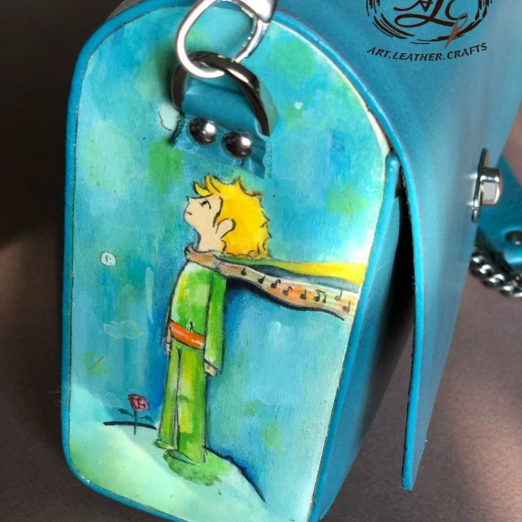کیف رودوشی زنانه طرح شازده کوچولو چرم طبیعی گاوی درجه یک تماما دستدوز است که در کناره کیف از چوب نراد طراحی شده توسط تیم چرم خلاق استفاده شده که روی چوب ها نقاشی دست با رنگ آکرولیک کار شده و تمامی چوب ها دارای پوشش نانو ضد آب و خش است.