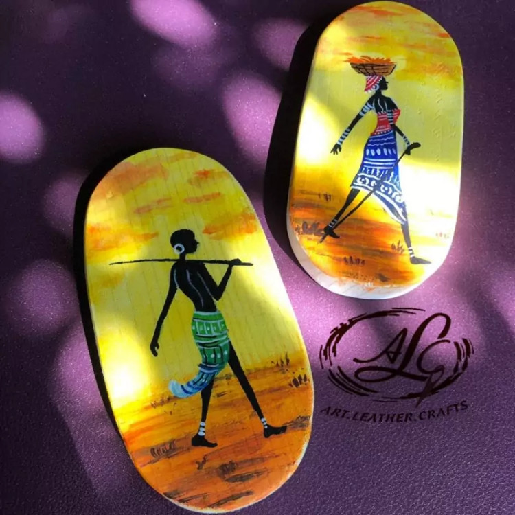 کیف دستی زنانه طرح بومی آفریقا قابلیت اتصال بند رودوشی چرم طبیعی اشبالت گاوی درجه یک تماما دستدوز است که در کناره کیف از چوب نراد طراحی شده توسط تیم چرم خلاق استفاده شده که روی چوب ها نقاشی دست با رنگ آکرولیک کار شده و تمامی چوب ها دارای پوشش نانو ضد آب و خش است.