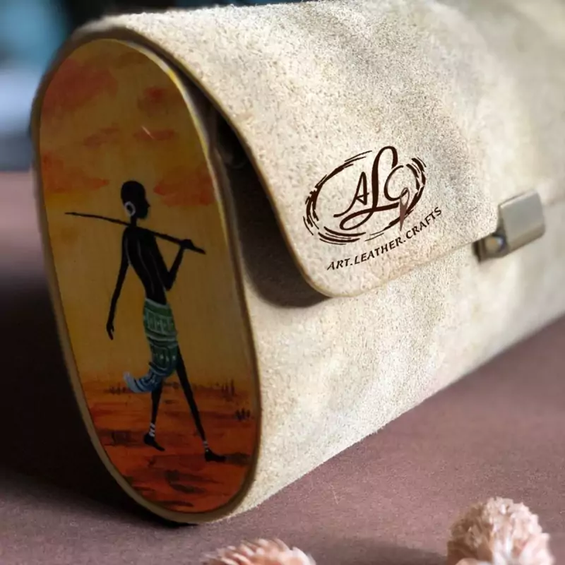 کیف دستی زنانه طرح بومی آفریقا قابلیت اتصال بند رودوشی چرم طبیعی اشبالت گاوی درجه یک تماما دستدوز است که در کناره کیف از چوب نراد طراحی شده توسط تیم چرم خلاق استفاده شده که روی چوب ها نقاشی دست با رنگ آکرولیک کار شده و تمامی چوب ها دارای پوشش نانو ضد آب و خش است.