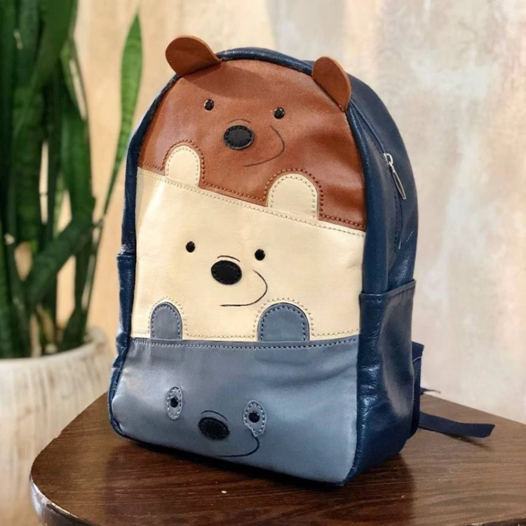 کیف کوله پشتی بچه گانه طرح سه کله پوک استفاده شده از چرم طبیعی گاوی تماما دستدوز طراحی شده توسط تیم چرم خلاق