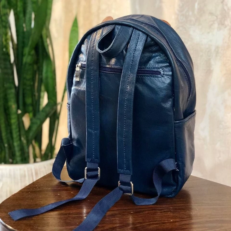 کیف کوله پشتی بچه گانه طرح سه کله پوک استفاده شده از چرم طبیعی گاوی تماما دستدوز طراحی شده توسط تیم چرم خلاق