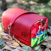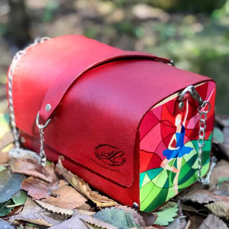 کیف رودوشی زنانه طرح یوگا با قابلیت اضافه کردن بند دستی چرم طبیعی گاوی درجه یک تماما دستدوز است که در کناره کیف از چوب نراد طراحی شده توسط تیم چرم خلاق استفاده شده که روی چوب ها نقاشی دست با رنگ آکرولیک کار شده و تمامی چوب ها دارای پوشش نانو ضد آب و خش است.