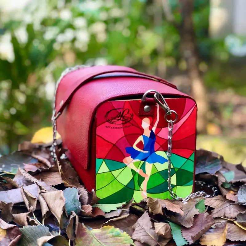 کیف رودوشی زنانه طرح یوگا با قابلیت اضافه کردن بند دستی چرم طبیعی گاوی درجه یک تماما دستدوز است که در کناره کیف از چوب نراد طراحی شده توسط تیم چرم خلاق استفاده شده که روی چوب ها نقاشی دست با رنگ آکرولیک کار شده و تمامی چوب ها دارای پوشش نانو ضد آب و خش است.
