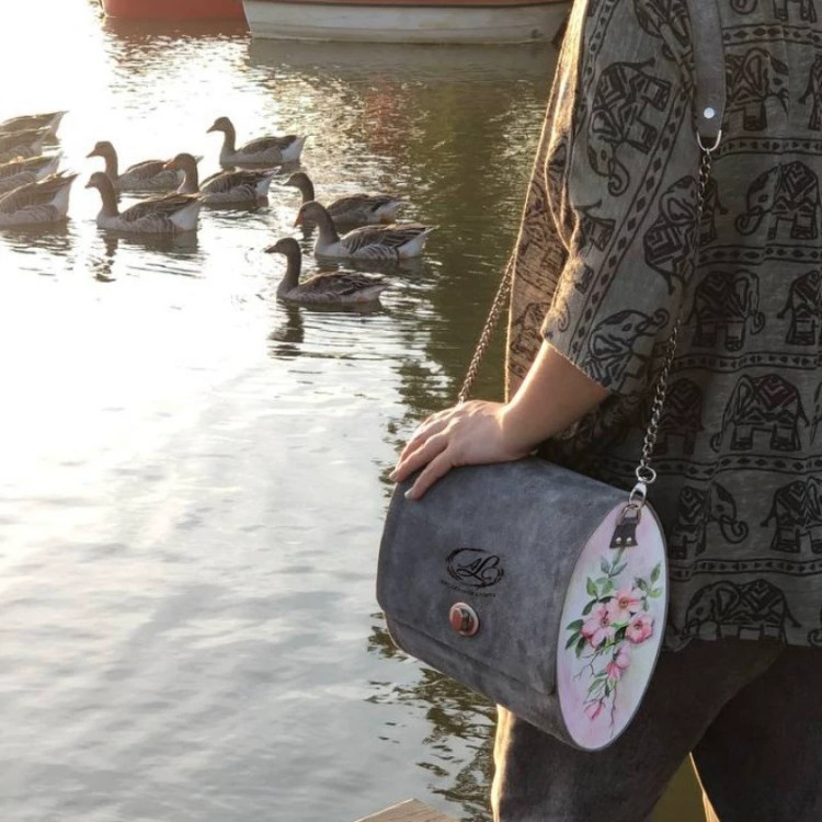 کیف رودوشی زنانه طرح کاملیا چرم طبیعی گاوی درجه یک تماما دستدوز است که در کناره کیف از چوب نراد طراحی شده توسط تیم چرم خلاق استفاده شده که روی چوب ها نقاشی دست با رنگ آکرولیک کار شده و تمامی چوب ها دارای پوشش نانو ضد آب و خش است.