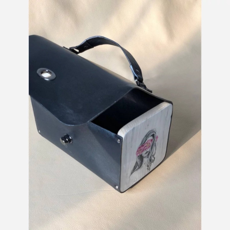 کیف دستی زنانه طرح گلچهره چرم طبیعی گاوی درجه یک تماما دستدوز است که در کناره کیف از چوب نراد طراحی شده توسط تیم چرم خلاق استفاده شده که روی چوب ها نقاشی دست با رنگ آکرولیک کار شده و تمامی چوب ها دارای پوشش نانو ضد آب و خش است.