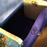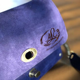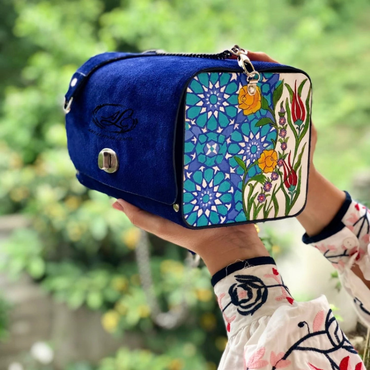 کیف رودوشی طرح گل و سنت چرم طبیعی اشبالت رنگ آبی کاربنی