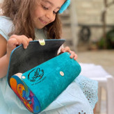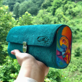 کیف دستی زنانه طرح کوبیسم غم با قابلیت اتصال بند رودوشی چرم طبیعی گاوی درجه یک تماما دستدوز است که در کناره کیف از چوب نراد طراحی شده توسط تیم چرم خلاق استفاده شده که روی چوب ها نقاشی دست با رنگ آکرولیک کار شده و تمامی چوب ها دارای پوشش نانو ضد آب و خش است.