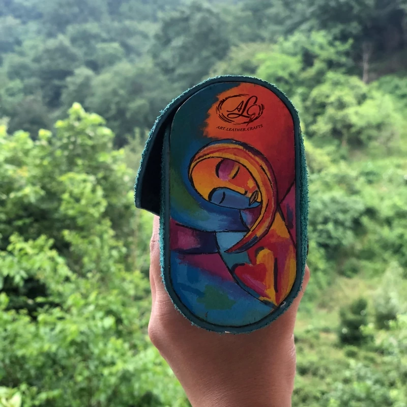 کیف دستی زنانه طرح کوبیسم غم با قابلیت اتصال بند رودوشی چرم طبیعی گاوی درجه یک تماما دستدوز است که در کناره کیف از چوب نراد طراحی شده توسط تیم چرم خلاق استفاده شده که روی چوب ها نقاشی دست با رنگ آکرولیک کار شده و تمامی چوب ها دارای پوشش نانو ضد آب و خش است.
