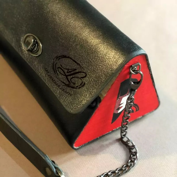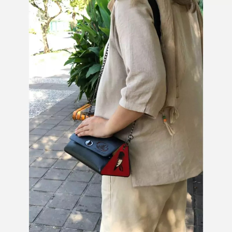 کیف رودوشی زنانه طرح حیران چرم طبیعی گاوی درجه یک تماما دستدوز است که در کناره کیف از چوب نراد طراحی شده توسط تیم چرم خلاق استفاده شده که روی چوب ها نقاشی دست با رنگ آکرولیک کار شده و تمامی چوب ها دارای پوشش نانو ضد آب و خش است.