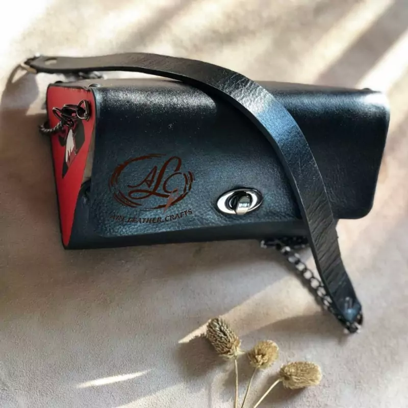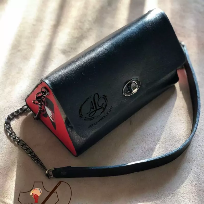 کیف رودوشی زنانه طرح حیران چرم طبیعی گاوی درجه یک تماما دستدوز است که در کناره کیف از چوب نراد طراحی شده توسط تیم چرم خلاق استفاده شده که روی چوب ها نقاشی دست با رنگ آکرولیک کار شده و تمامی چوب ها دارای پوشش نانو ضد آب و خش است.