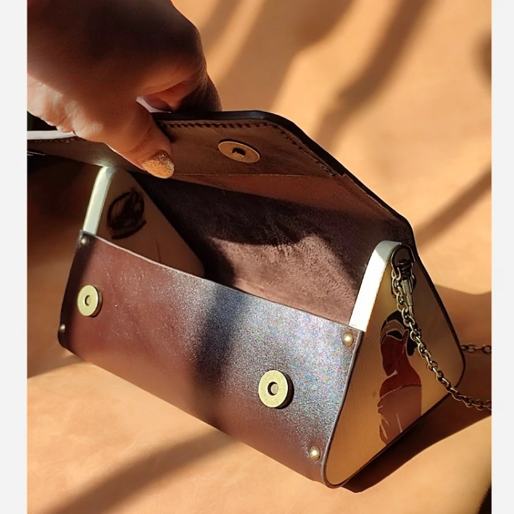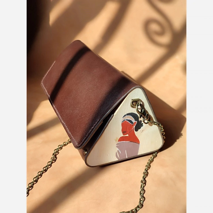 کیف رودوشی زنانه طرح سیه چهره چرم طبیعی گاوی درجه یک تماما دستدوز است که در کناره کیف از چوب نراد طراحی شده توسط تیم چرم خلاق استفاده شده که روی چوب ها نقاشی دست با رنگ آکرولیک کار شده و تمامی چوب ها دارای پوشش نانو ضد آب و خش است.