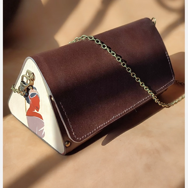کیف رودوشی زنانه طرح سیه چهره چرم طبیعی گاوی درجه یک تماما دستدوز است که در کناره کیف از چوب نراد طراحی شده توسط تیم چرم خلاق استفاده شده که روی چوب ها نقاشی دست با رنگ آکرولیک کار شده و تمامی چوب ها دارای پوشش نانو ضد آب و خش است.