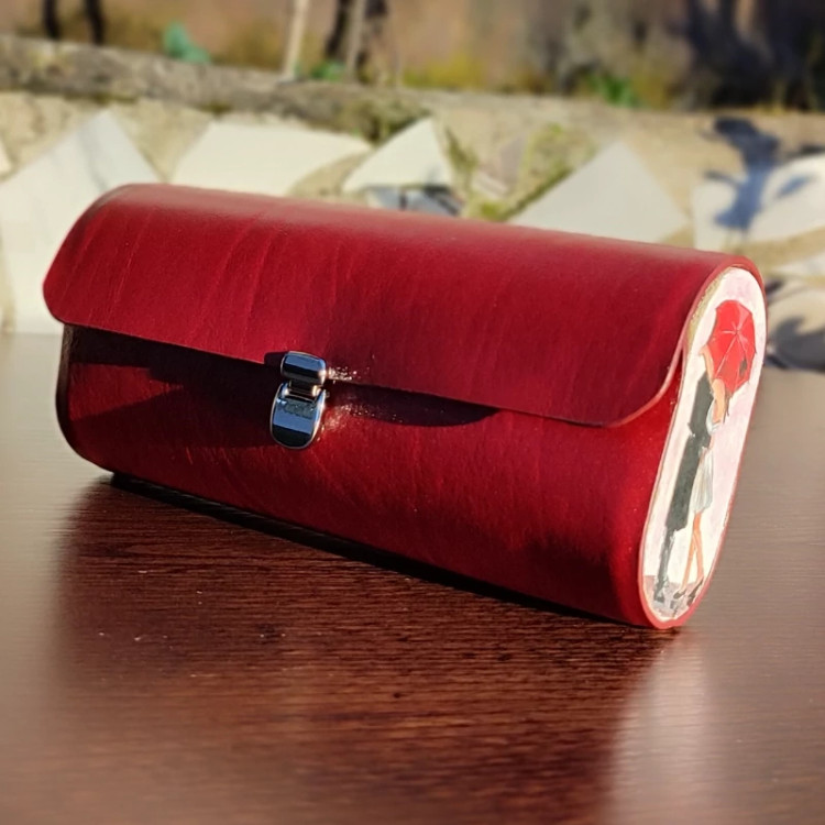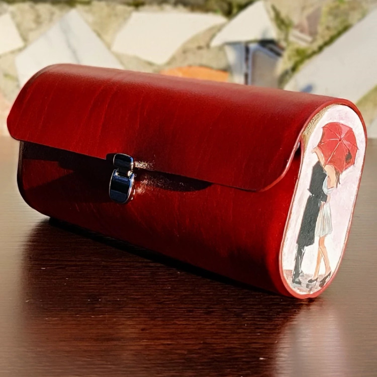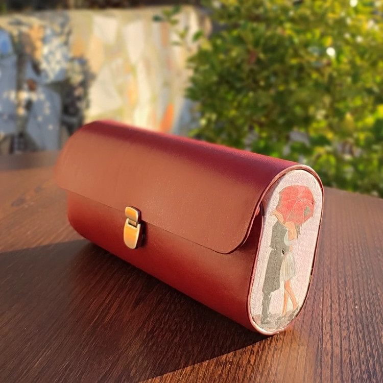 کیف دستی زنانه طرح چتربا قابلیت اتصال بند رودوشی چرم طبیعی گاوی درجه یک تماما دستدوز است که در کناره کیف از چوب نراد طراحی شده توسط تیم چرم خلاق استفاده شده که روی چوب ها نقاشی دست با رنگ آکرولیک کار شده و تمامی چوب ها دارای پوشش نانو ضد آب و خش است.
