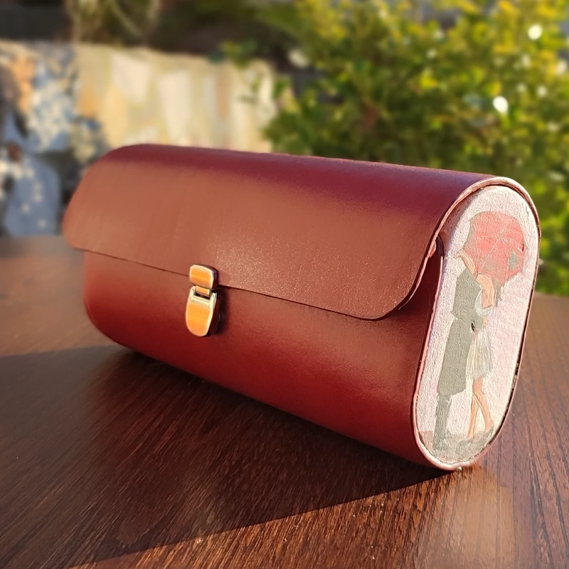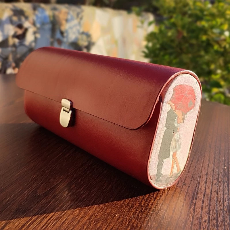 کیف دستی زنانه طرح چتربا قابلیت اتصال بند رودوشی چرم طبیعی گاوی درجه یک تماما دستدوز است که در کناره کیف از چوب نراد طراحی شده توسط تیم چرم خلاق استفاده شده که روی چوب ها نقاشی دست با رنگ آکرولیک کار شده و تمامی چوب ها دارای پوشش نانو ضد آب و خش است.