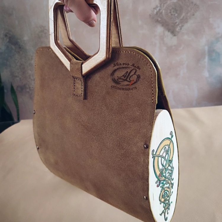 کیف دسته چوبی چرم طبیعی اشبالت گاوی درجه یک تماما دستدوز است که در کناره کیف از چوب نراد طراحی شده توسط تیم چرم خلاق استفاده شده که روی چوب ها نقاشی دست با رنگ آکرولیک کار شده و تمامی چوب ها دارای پوشش نانو ضد آب و خش است.