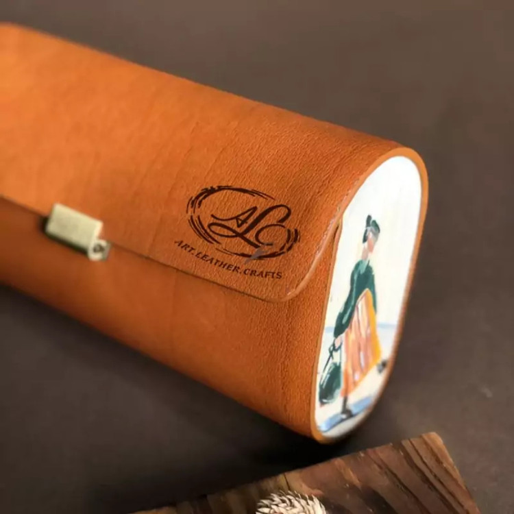 کیف دستی زنانه طرح مسافر چرم طبیعی گاوی درجه یک تماما دستدوز است که در کناره کیف از چوب نراد طراحی شده توسط تیم چرم خلاق استفاده شده که روی چوب ها نقاشی دست با رنگ آکرولیک کار شده و تمامی چوب ها داری مواد نانو ضد آب و خش است.