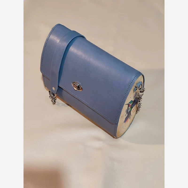 کیف رودوشی زنانه طرح مرغ مگسخوار چرم طبیعی گاوی درجه یک تماما دستدوز است که در کناره کیف از چوب نراد طراحی شده توسط تیم چرم خلاق استفاده شده که روی چوب ها نقاشی دست با رنگ آکرولیک کار شده و تمامی چوب ها داری مواد نانو ضد آب و خش است.