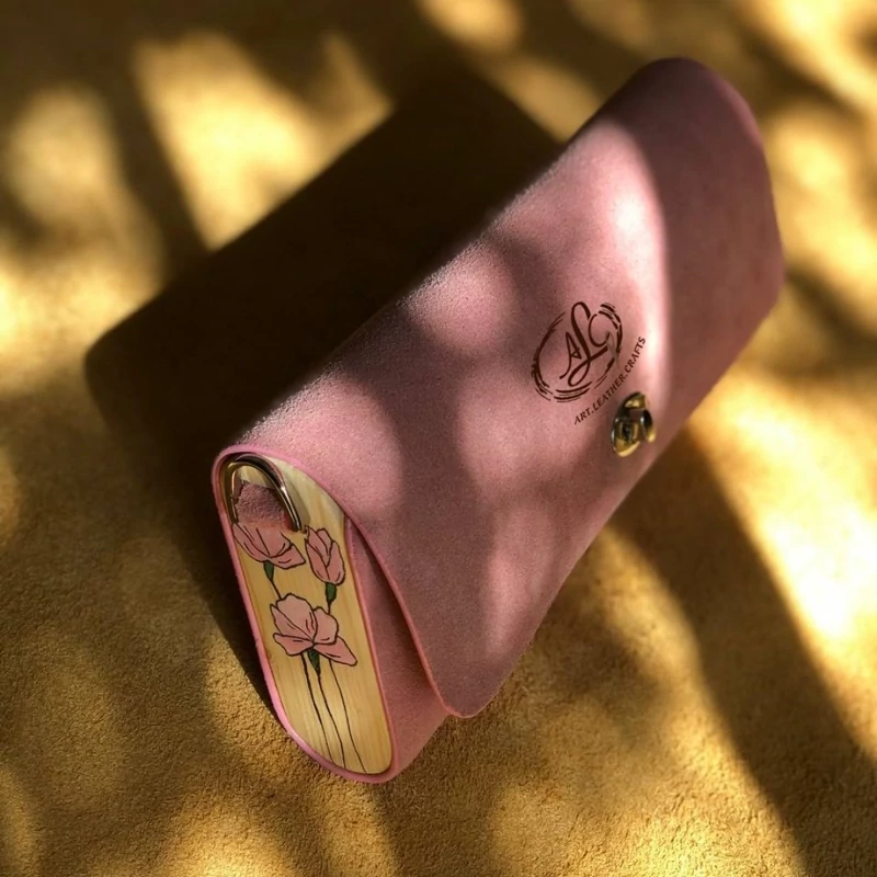 کیف دستی زنانه طرح گل زینتی با قابلیت اضافه کردن بند رودوشی چرم طبیعی گاوی درجه یک تماما دستدوز است که در کناره کیف از چوب نراد طراحی شده توسط تیم چرم خلاق استفاده شده که روی چوب ها نقاشی دست با رنگ آکرولیک کار شده و تمامی چوب ها دارای پوشش نانو ضد آب و خش است.