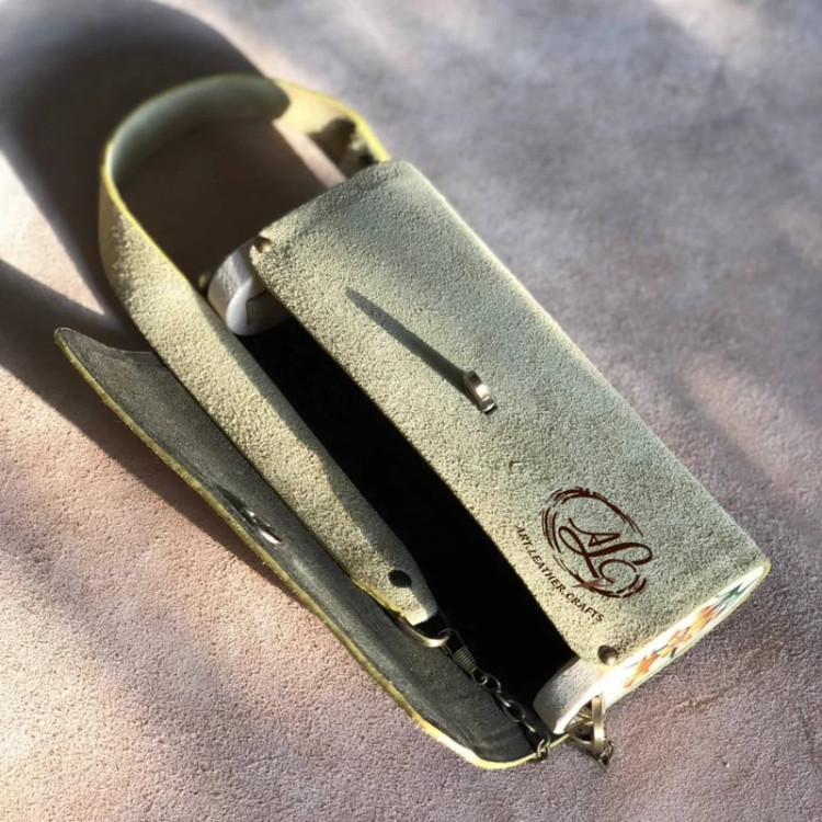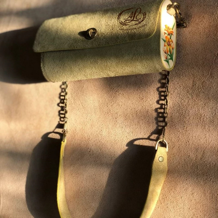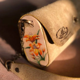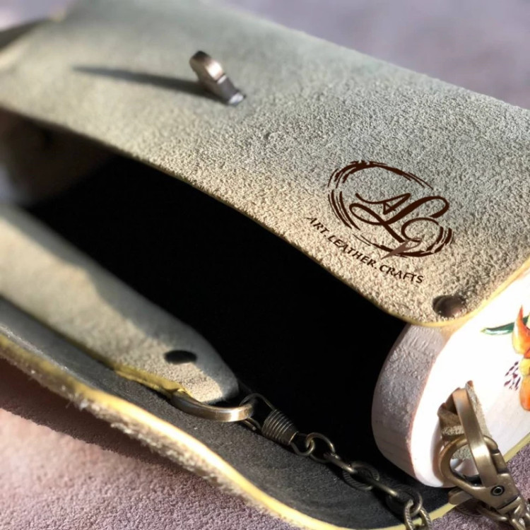 کیف دستی زنانه طرح زنبق با قابلیت اضافه کردن بند رودوشی چرم طبیعی گاوی درجه یک تماما دستدوز است که در کناره کیف از چوب نراد طراحی شده توسط تیم چرم خلاق استفاده شده که روی چوب ها نقاشی دست با رنگ آکرولیک کار شده و تمامی چوب ها دارای پوشش نانو ضد آب و خش است.