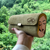 کیف دستی زنانه طرح ابروکمون با قابلیت اضافه کردن بند رودوشی چرم طبیعی گاوی درجه یک تماما دستدوز است که در کناره کیف از چوب نراد طراحی شده توسط تیم چرم خلاق استفاده شده که روی چوب ها نقاشی دست با رنگ آکرولیک کار شده و تمامی چوب ها دارای پوشش نانو ضد آب و خش است.