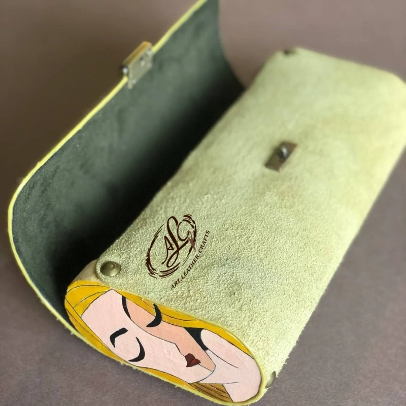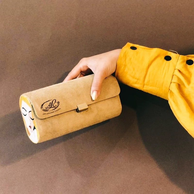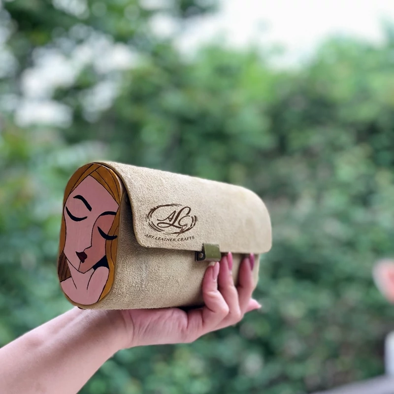 کیف دستی زنانه طرح ابروکمون با قابلیت اضافه کردن بند رودوشی چرم طبیعی گاوی درجه یک تماما دستدوز است که در کناره کیف از چوب نراد طراحی شده توسط تیم چرم خلاق استفاده شده که روی چوب ها نقاشی دست با رنگ آکرولیک کار شده و تمامی چوب ها دارای پوشش نانو ضد آب و خش است.
