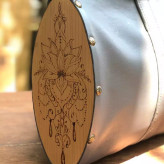 کیف دسته چوبی زنانه طرح سوخته نگاری عباسی با قابلیت اضافه کردن بند رودوشی چرم طبیعی گاوی درجه یک تماما دستدوز است که در کناره کیف از چوب نراد طراحی شده توسط تیم چرم خلاق استفاده شده که روی چوب ها سوخته نگاری شده و تمامی چوب ها دارای پوشش نانو ضد آب و خش است.