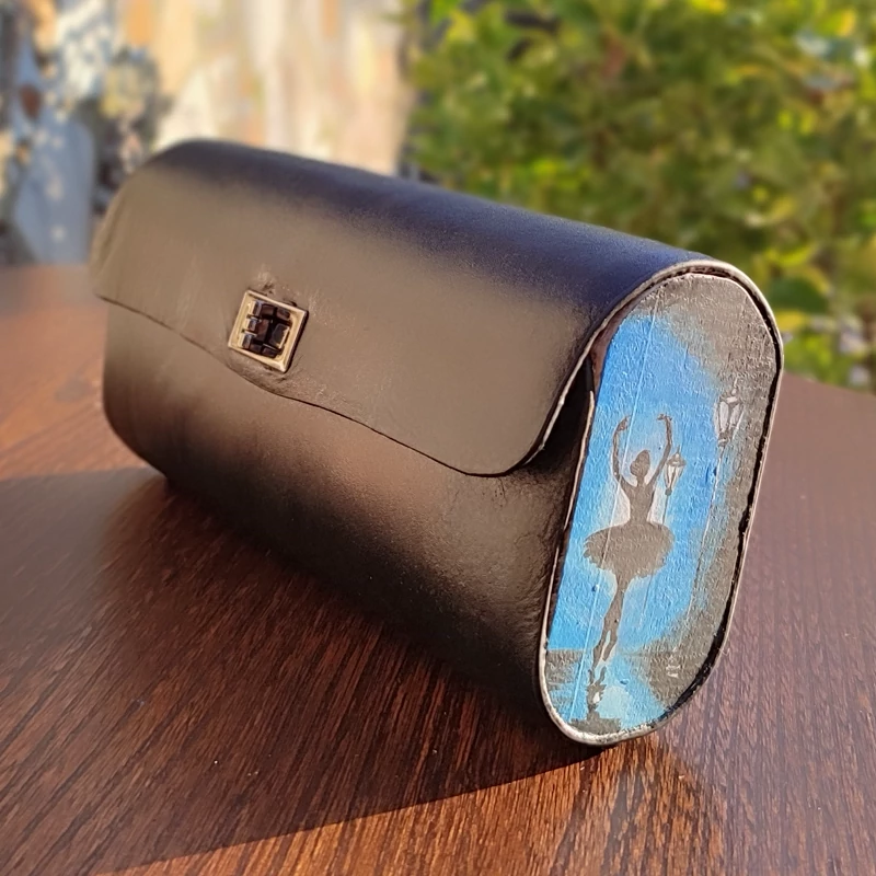 کیف دستی زنانه طرح باله در شب با قابلیت اضافه کردن بند رودوشی چرم طبیعی گاوی درجه یک تماما دستدوز است که در کناره کیف از چوب نراد طراحی شده توسط تیم چرم خلاق استفاده شده که روی چوب ها نقاشی دست با رنگ آکرولیک کار شده و تمامی چوب ها دارای پوشش نانو ضد آب و خش است.