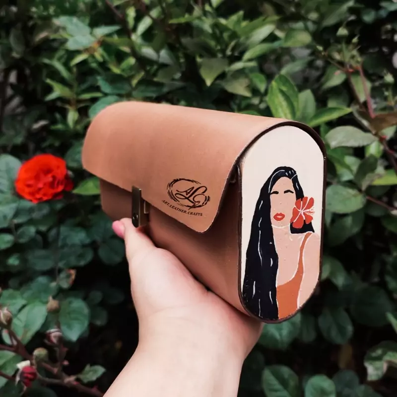 کیف دستی زنانه طرح گل به سربا قابلیت اضافه کردن بند رودوشی چرم طبیعی گاوی درجه یک تماما دستدوز است که در کناره کیف از چوب نراد طراحی شده توسط تیم چرم خلاق استفاده شده که روی چوب ها نقاشی دست با رنگ آکرولیک کار شده و تمامی چوب ها دارای پوشش نانو ضد آب و خش است.