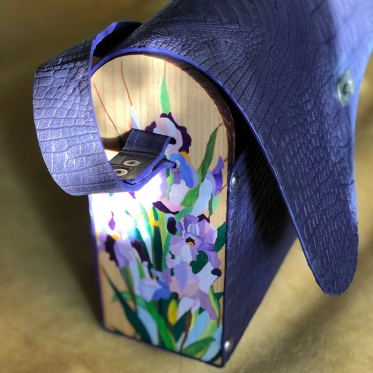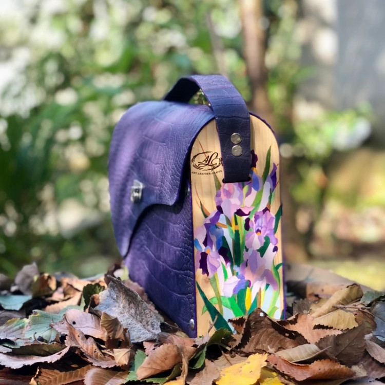 کیف رودوشی زنانه طرح زنبق طبیعی گاوی درجه یک تماما دستدوز است که در کناره کیف از چوب نراد طراحی شده توسط تیم چرم خلاق استفاده شده که روی چوب ها نقاشی دست با رنگ آکرولیک کار شده و تمامی چوب ها دارای پوشش نانو ضد آب و خش است.