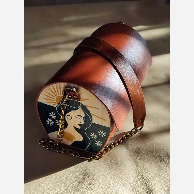 کیف رودوشی زنانه طرح لگو چرم طبیعی گاوی درجه یک تماما دستدوز است که در کناره کیف از چوب نراد طراحی شده توسط تیم چرم خلاق استفاده شده که روی چوب ها نقاشی دست با رنگ آکرولیک کار شده و تمامی چوب ها دارای پوشش نانو ضد آب و خش است.