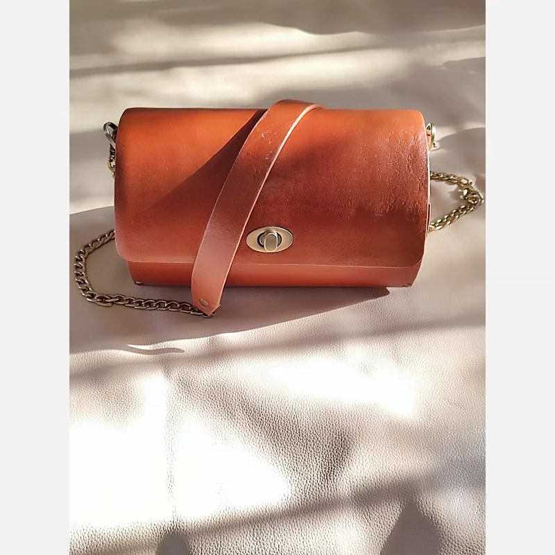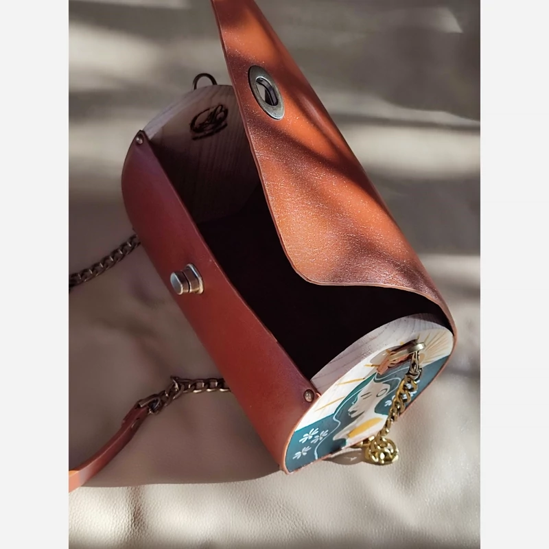 کیف رودوشی زنانه طرح لگو چرم طبیعی گاوی درجه یک تماما دستدوز است که در کناره کیف از چوب نراد طراحی شده توسط تیم چرم خلاق استفاده شده که روی چوب ها نقاشی دست با رنگ آکرولیک کار شده و تمامی چوب ها دارای پوشش نانو ضد آب و خش است.