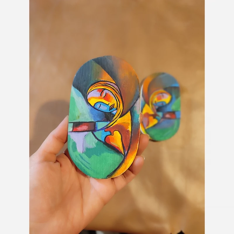 کیف دستی زنانه طرح کوبیسم به سربا قابلیت اضافه کردن بند رودوشی چرم طبیعی گاوی درجه یک تماما دستدوز است که در کناره کیف از چوب نراد طراحی شده توسط تیم چرم خلاق استفاده شده که روی چوب ها نقاشی دست با رنگ آکرولیک کار شده و تمامی چوب ها دارای پوشش نانو ضد آب و خش است.