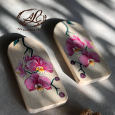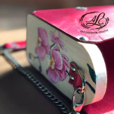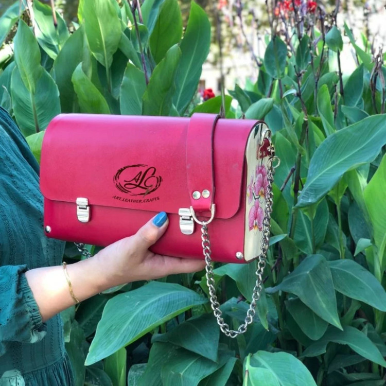 کیف رودوشی زنانه طرح ارکیده چرم طبیعی گاوی درجه یک تماما دستدوز است که در کناره کیف از چوب نراد طراحی شده توسط تیم چرم خلاق استفاده شده که روی چوب ها نقاشی دست با رنگ آکرولیک کار شده و تمامی چوب ها دارای پوشش نانو ضد آب و خش است.