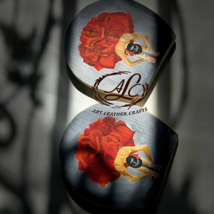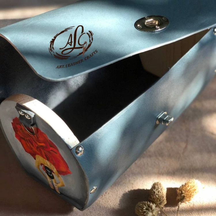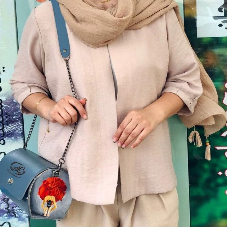 کیف رودوشی زنانه طرح رزیتا چرم طبیعی گاوی درجه یک تماما دستدوز است که در کناره کیف از چوب نراد طراحی شده توسط تیم چرم خلاق استفاده شده که روی چوب ها نقاشی دست با رنگ آکرولیک کار شده و تمامی چوب ها دارای پوشش نانو ضد آب و خش است.