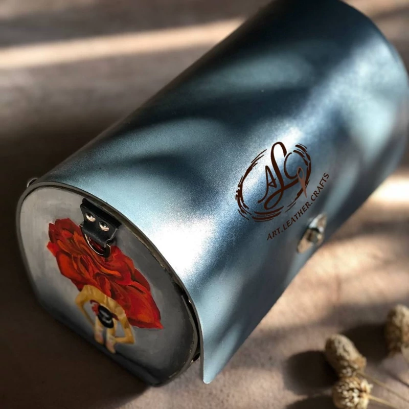 کیف رودوشی زنانه طرح رزیتا چرم طبیعی گاوی درجه یک تماما دستدوز است که در کناره کیف از چوب نراد طراحی شده توسط تیم چرم خلاق استفاده شده که روی چوب ها نقاشی دست با رنگ آکرولیک کار شده و تمامی چوب ها دارای پوشش نانو ضد آب و خش است.