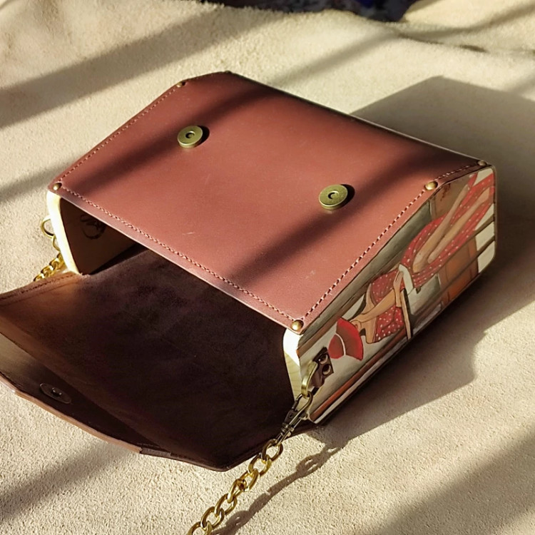 کیف رودوشی زنانه طرح زن اروپایی چرم طبیعی گاوی درجه یک تماما دستدوز است که در کناره کیف از چوب نراد طراحی شده توسط تیم چرم خلاق استفاده شده که روی چوب ها نقاشی دست با رنگ آکرولیک کار شده و تمامی چوب ها دارای پوشش نانو ضد آب و خش است.