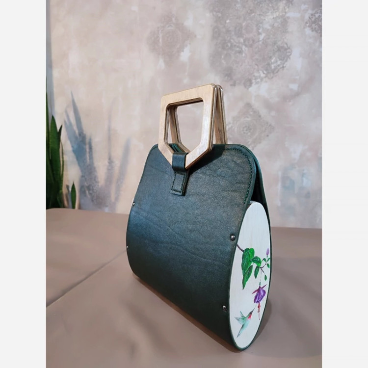 کیف دسته چوبی طرح پرواز چرم طبیعی گاوی درجه یک تماما دستدوز است که در کناره کیف از چوب نراد طراحی شده توسط تیم چرم خلاق استفاده شده که روی چوب ها نقاشی دست با رنگ آکرولیک کار شده و تمامی چوب ها دارای پوشش نانو ضد آب و خش است.