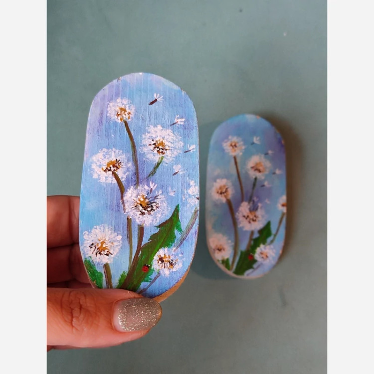 کیف دستی زنانه طرح قاصدک با قابلیت اضافه کرد بند رودوشی ی چرم طبیعی گاوی درجه یک تماما دستدوز است که در کناره کیف از چوب نراد طراحی شده توسط تیم چرم خلاق استفاده شده که روی چوب ها نقاشی دست با رنگ آکرولیک کار شده و تمامی چوب ها دارای پوشش نانو ضد آب و خش است.