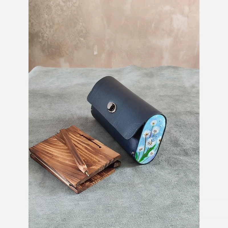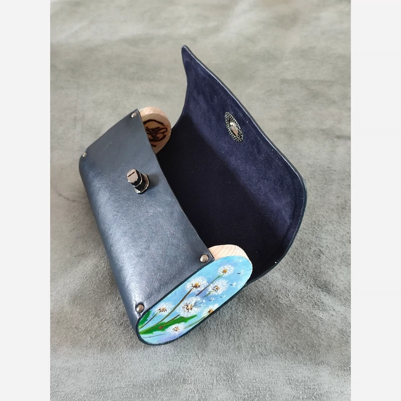 کیف دستی زنانه طرح قاصدک با قابلیت اضافه کرد بند رودوشی ی چرم طبیعی گاوی درجه یک تماما دستدوز است که در کناره کیف از چوب نراد طراحی شده توسط تیم چرم خلاق استفاده شده که روی چوب ها نقاشی دست با رنگ آکرولیک کار شده و تمامی چوب ها دارای پوشش نانو ضد آب و خش است.