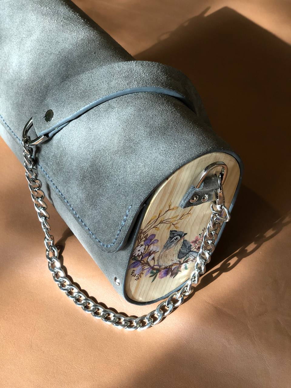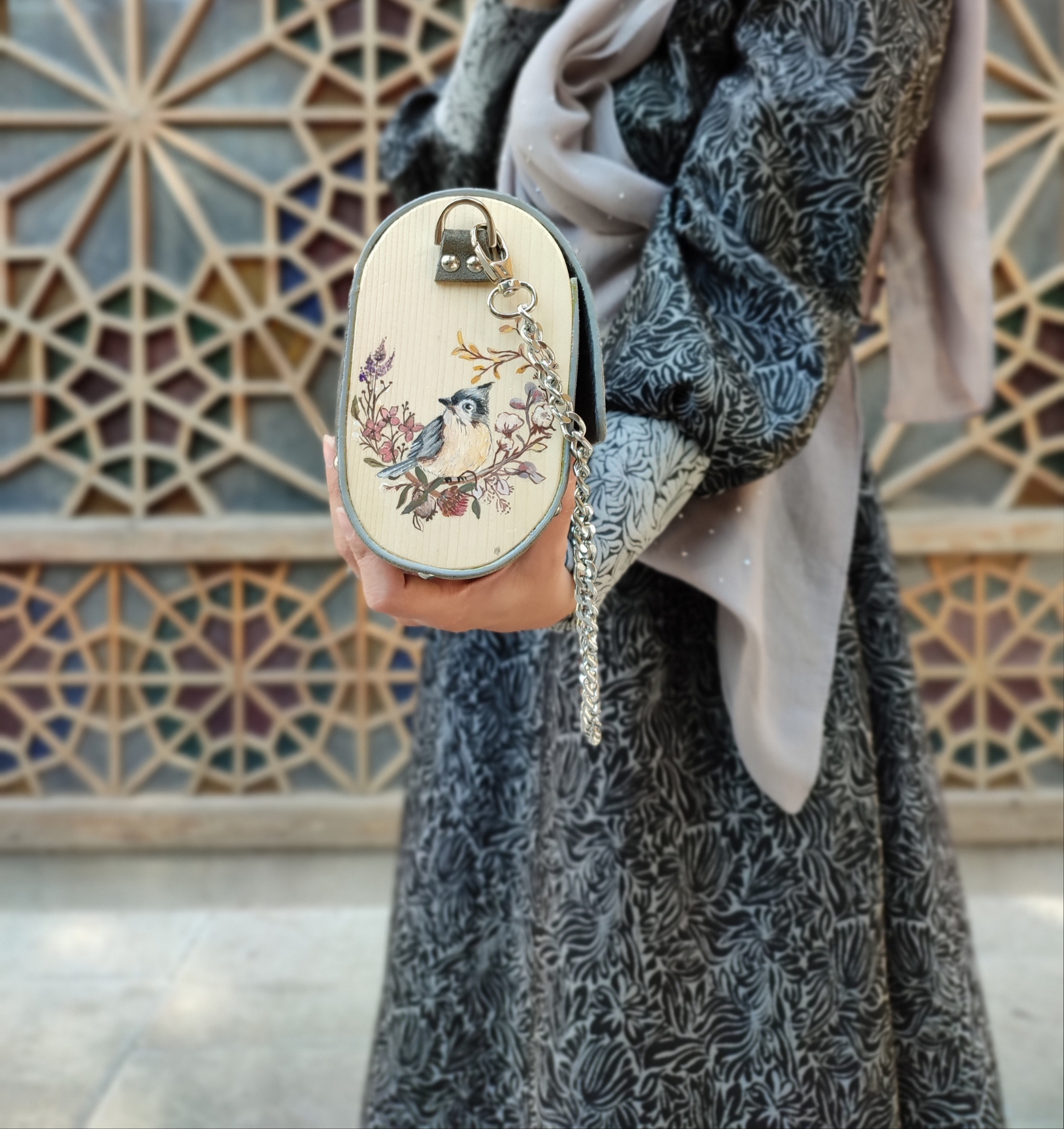 کیف رو دوشی چرم طبیعی اشبالت گاوی درجه یک 🐄تماما دستدوز🪡 دارای پرداخت لبه با مواد ایتالیایی 👌نقاشی شده با رنگ آکرولیک روی چوب نراد 🧚دارای پوشش نانو چوب برای ضد خش و ضد آب شدن چوب ها 💧