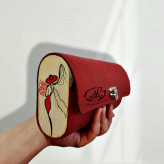 کیف دستی زنانه طرح گل فروش با قابلیت اضافه کردن بند رودوشی چرم طبیعی گاوی درجه یک تماما دستدوز است که در کناره کیف از چوب نراد طراحی شده توسط تیم چرم خلاق استفاده شده که روی چوب ها نقاشی دست با رنگ آکرولیک کار شده و تمامی چوب ها دارای پوشش نانو ضد آب و خش است.