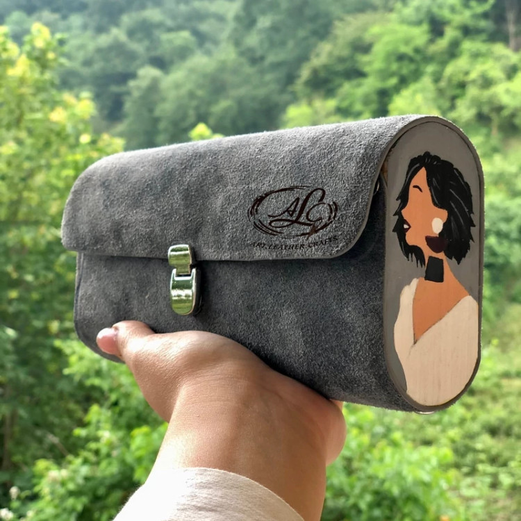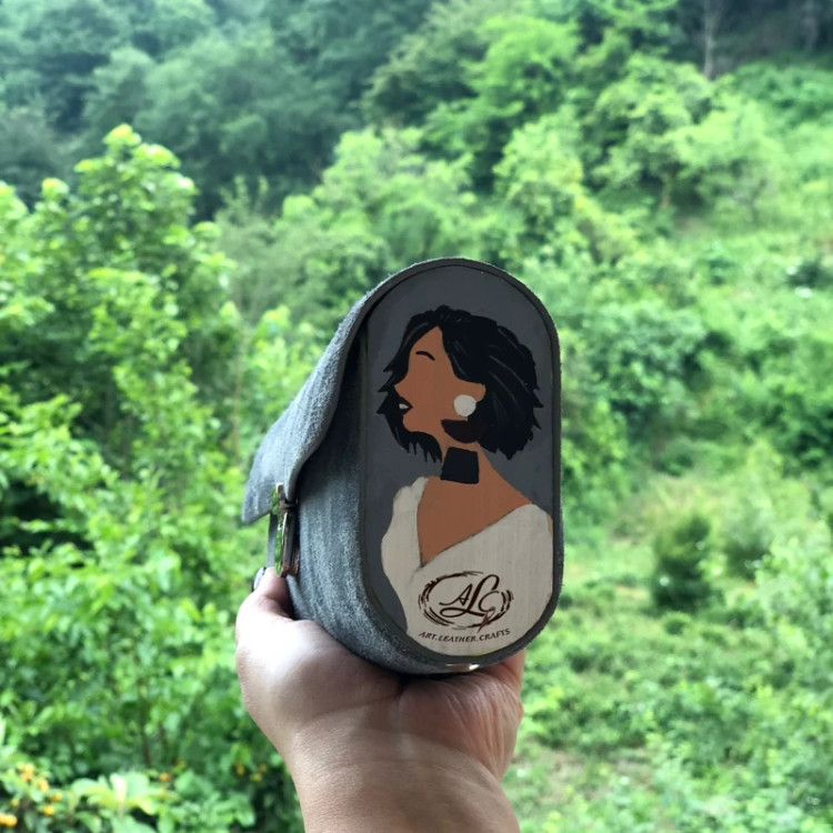 کیف دستی زنانه طرح گوشواره به گوش با قابلیت اضافه کردن بند رودوشی چرم طبیعی گاوی درجه یک تماما دستدوز است که در کناره کیف از چوب نراد طراحی شده توسط تیم چرم خلاق استفاده شده که روی چوب ها نقاشی دست با رنگ آکرولیک کار شده و تمامی چوب ها دارای پوشش نانو ضد آب و خش است.