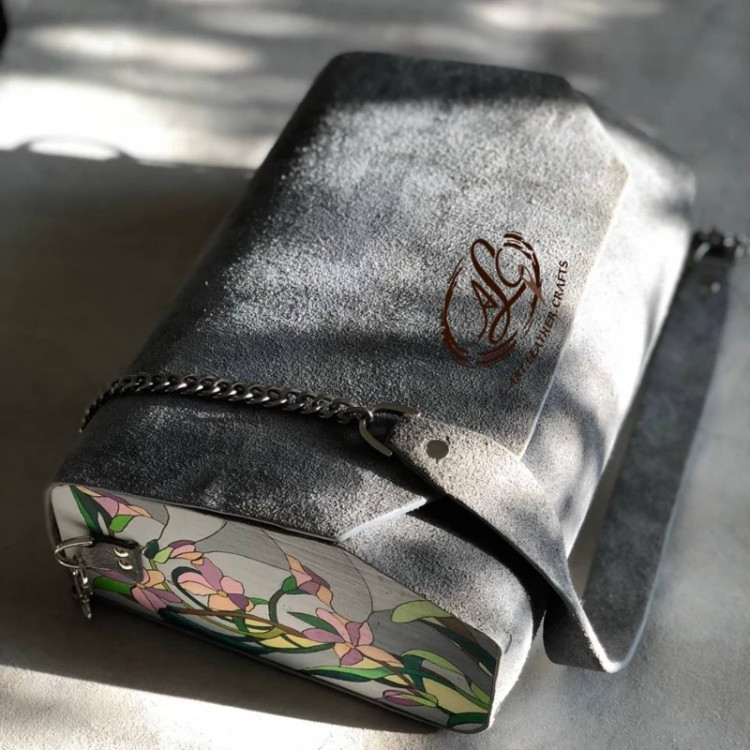 کیف رودوشی چرم طبیعی اشبالت گاوی درجه یک تماما دستدوز است که در کناره کیف از چوب نراد طراحی شده توسط تیم چرم خلاق استفاده شده که روی چوب ها نقاشی دست با رنگ آکرولیک کار شده و تمامی چوب ها دارای پوشش نانو ضد آب و خش است.