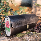 کیف دستی زنانه طرح گل ختمی با قابلیت اضافه کردن بند رودوشی چرم طبیعی گاوی درجه یک تماما دستدوز است که در کناره کیف از چوب نراد طراحی شده توسط تیم چرم خلاق استفاده شده که روی چوب ها نقاشی دست با رنگ آکرولیک کار شده و تمامی چوب ها دارای پوشش نانو ضد آب و خش است.