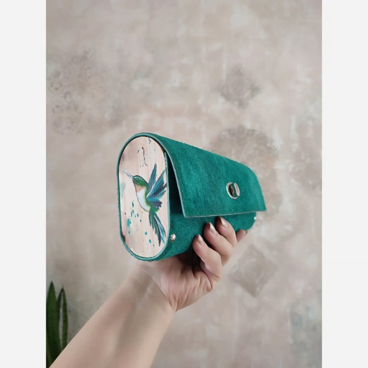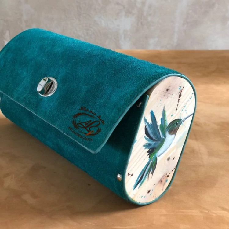کیف دستی زنانه طرح پرواز با قابلیت اضافه کردن بند رودوشی چرم طبیعی گاوی درجه یک تماما دستدوز است که در کناره کیف از چوب نراد طراحی شده توسط تیم چرم خلاق استفاده شده که روی چوب ها نقاشی دست با رنگ آکرولیک کار شده و تمامی چوب ها دارای پوشش نانو ضد آب و خش است.