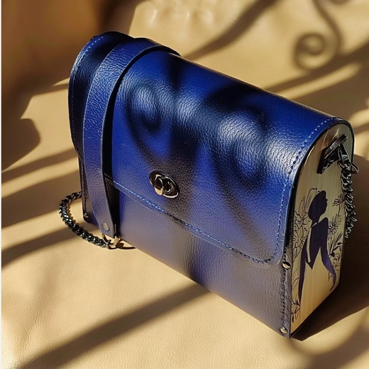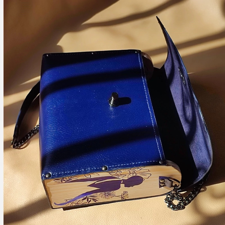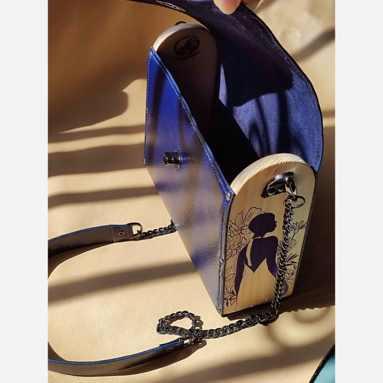 کیف زنانه چرم طبیعی گاوی تلفیقی با چوب نراد نقاشی شده با رنگ آکرولیک و دارای مواد نانو ضد خش و ضد آب چوب و دارای پرداخت لبه با مواد ایتالیایی